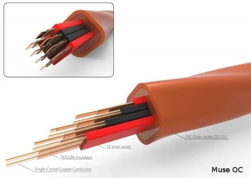 廠方以方芯導體技術開發的 MUSE OC 方形單晶銅線材,採用獨特設計,因為沒有中心點,大大降低了集膚效應的影響,使三頻訊號傳送更為一致與連貫。